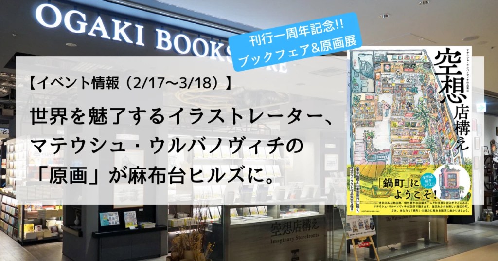 “This collection of works by Mateusz Urbanowicz, whose series of books has sold over 100,000 copies in Japan alone and continues to gain fans around the world, will be held at Ogaki Bookstore’s Azabudai Hills branch from Tuesday, February 17, 2026, as a special event to allow readers to experience the world of his latest work, “Imaginary Storefronts.” The exhibition will feature precious original artworks, showcasing the freshness and attention to detail of watercolors that cannot be fully expressed in print. In addition, 30 limited-edition prints and original merchandise will be available for purchase, and Urbanowicz himself will appear at a signing session.”