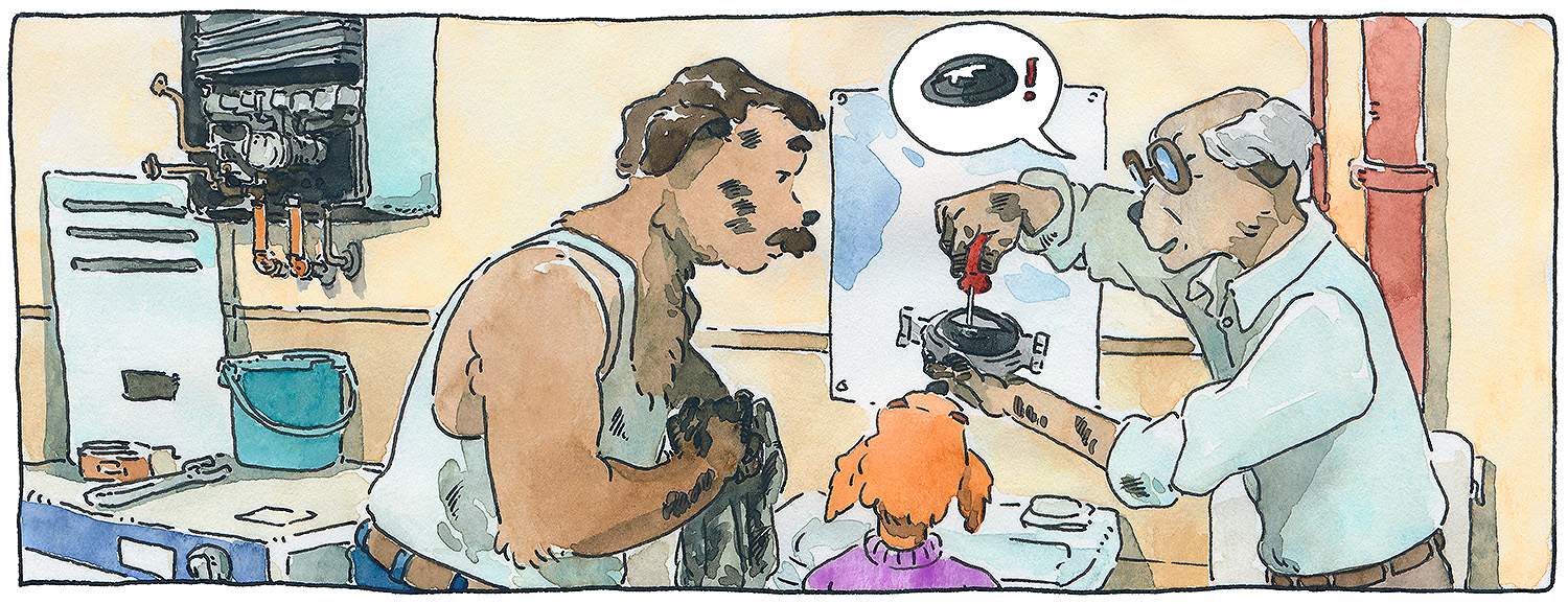I would then witness the gas heater being carefully dismantled to bits (after turning the gas and water off, obviously). I would learn how the thing worked, what was the ailing part’s role, and finally how to put the device back together in the right way. Sometimes I was even permitted to put some screws in myself!