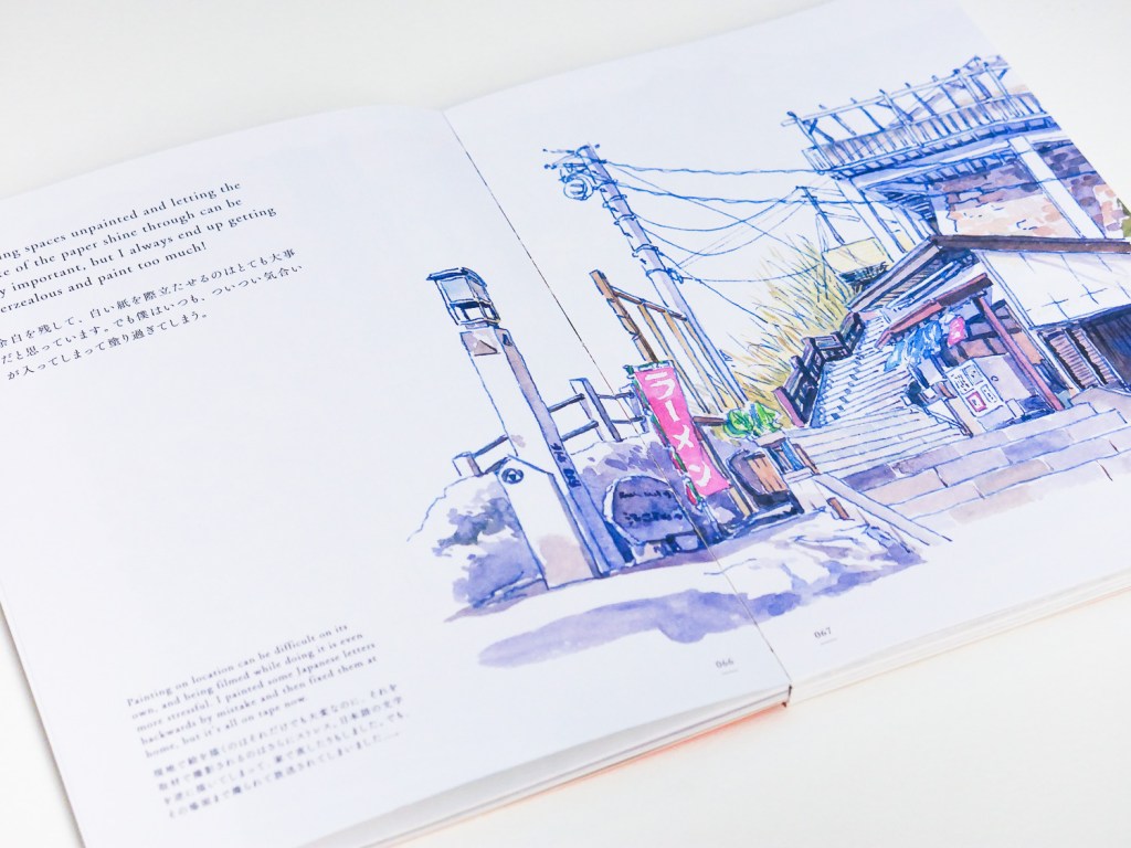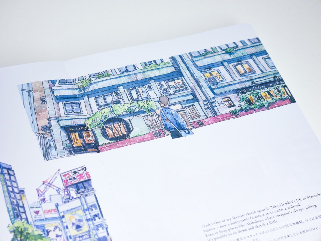 In my books, I sometimes use the obi more creatively: for example, making the actual book cover plain and classy and putting the illustration and information on a very wide obi. I did this with my Tokyo at Night book, for example, and decided to use it in this project too! When it’s “stripped down” to its bare cover, we wanted the book to look a bit like a sketchbook, so all the usual cover things went onto the obi.