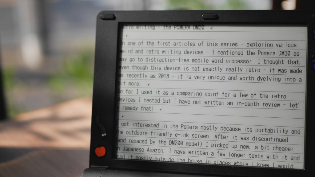 In one of the first articles of this series – exploring various weird and retro writing devices – I mentioned the Pomera DM30 as may go to distraction-free mobile word processor. Even though this device is not exactly retro – it was made as recently as 2018 – it is unique and worth further delving into.