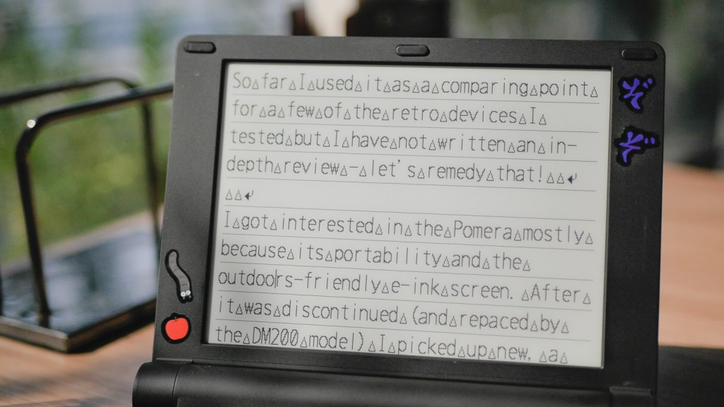 Overall, after about two years of using the DM30 off and on, I still think it’s a very neat device. Yes, it has some downsides coming from its Japanese word processor lineage, but it certainly is a viable distraction-free writing device that stays out of the way of the creative process while also providing most of the needed options when necessary. It is still one of my most used dedicated writing tools and my favorite e-ink one. You can usually distinguish which digital tool I actually use by how many stickers it gathered, and the DM30 has a fair amount.