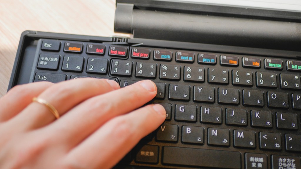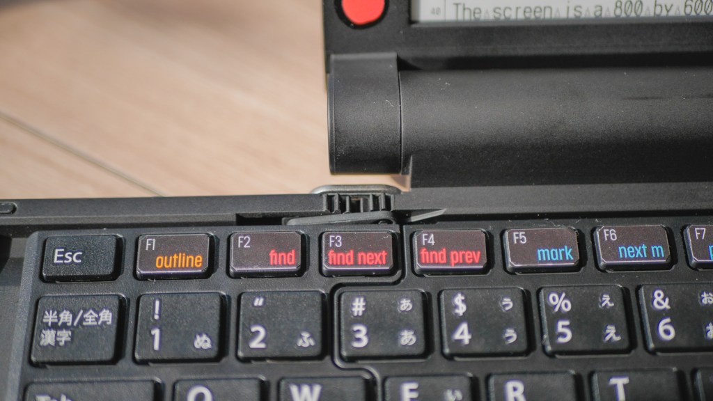Also, the Japanese character of the Pomera ads some quirks that can irritate – I already mentioned the encoding, but we get character count and not word count, and the monospaced only font is not well suited for English and can be hard to read where diacritic signs are used (it’s hard to tell if there is a space in words like “it’s” after the apostrophe or not, for example). The keyboard layout is also, of course, Japanese, so it might take some getting used to.