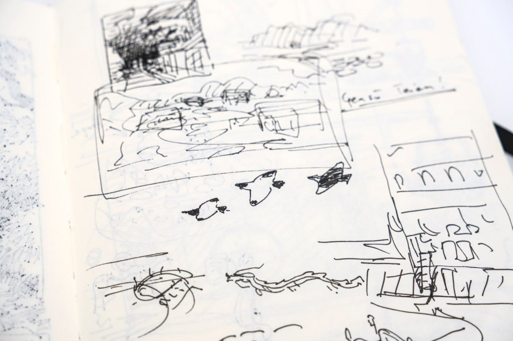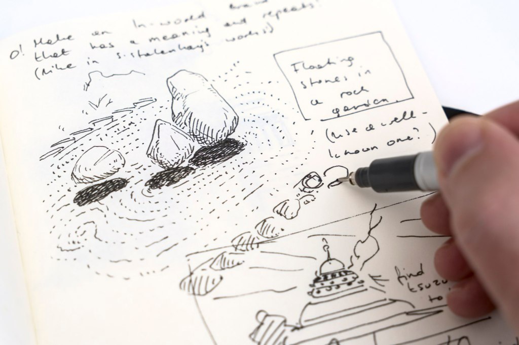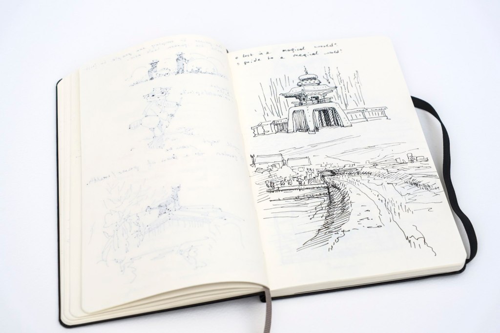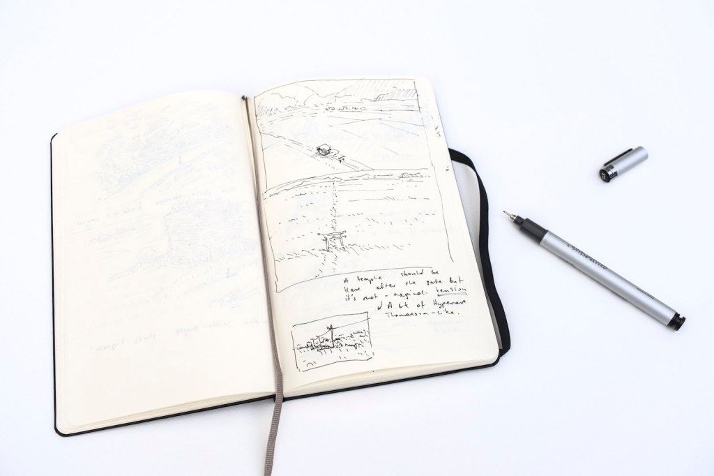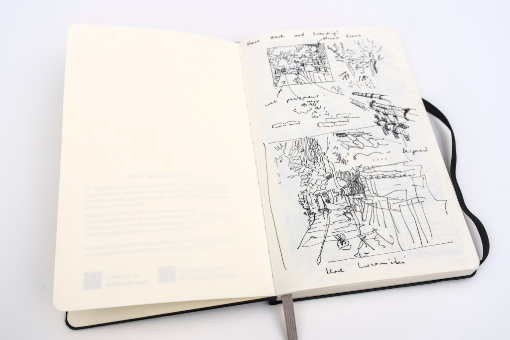 The first one was rewatching, together with our son, the “Never-Ending Man” documentary about Hayao Miyazaki – looking closely, I realised that the “himitsu techou” (secret notebook) he used for developing ideas was just a regular, hard-cover, Moleskine notebook. Not caring at all that the ink of his fountain pen made blobby line ends and bled all the way through the pages, he just took memos or drew thumbnails of ideas, treating the whole notebook as something disposable.