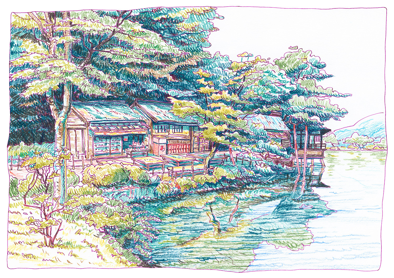 日本の町並みや建物を独特の視点と優しいタッチで描き綴った一連の作品からは、