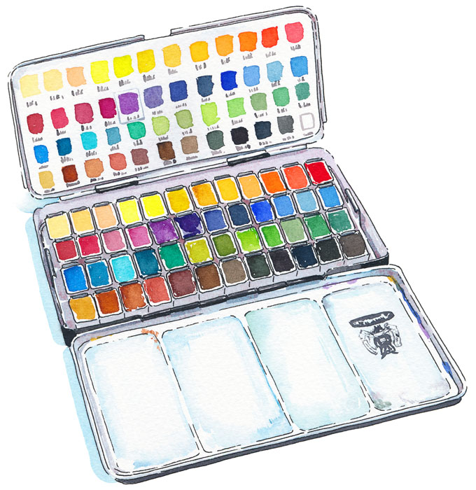 Read a list of my favourite and reccomended drawing tools including pens and pencils. The watercolors I use for my daily work and all the additional accesories for painting.